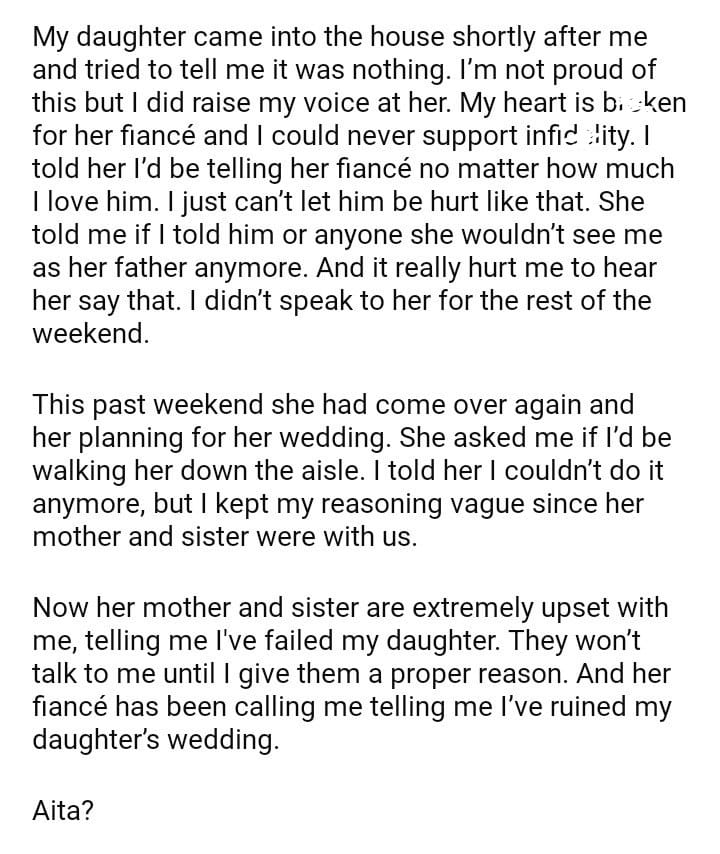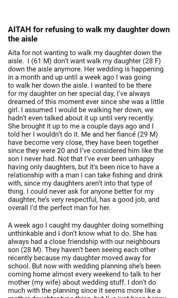 AITAH for refusing to walk my daughter down the aisle