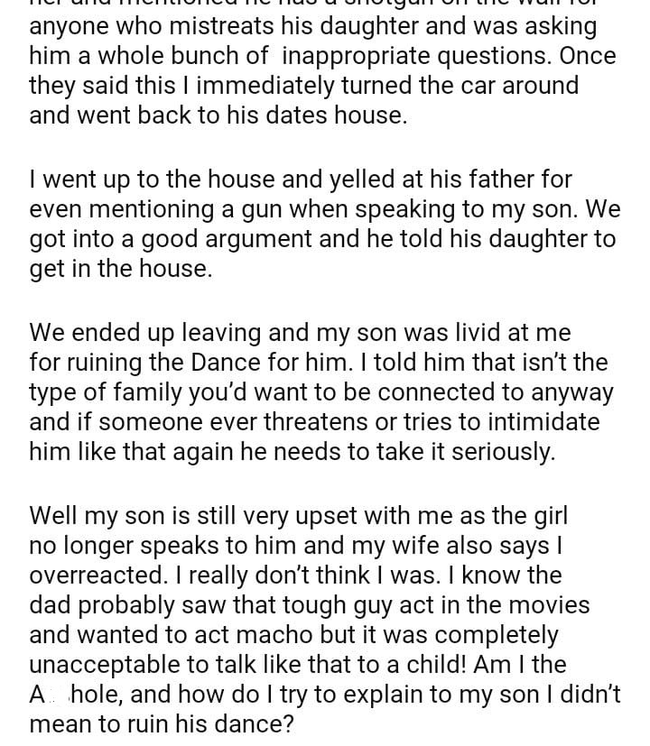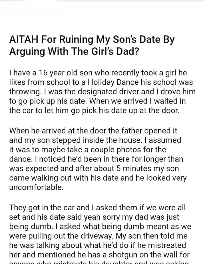 AITAH For Ruining My Son’s Date By Arguing With The Girl’s Dad?