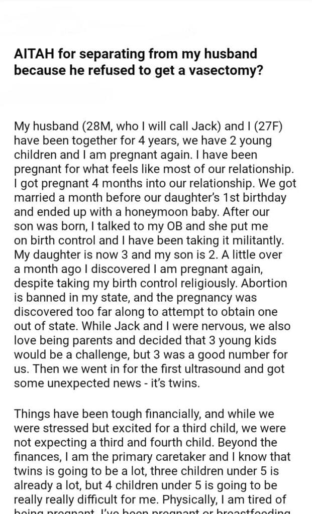 AITAH for separating from my husband because he refused