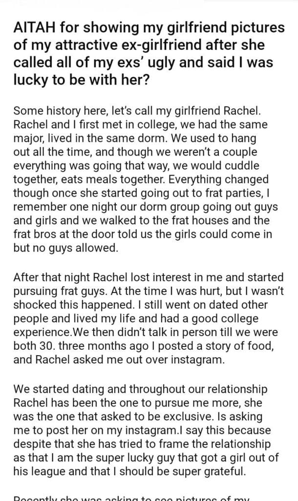 AITAH for showing my girlfriend pictures of my attractive ex-girlfriend
