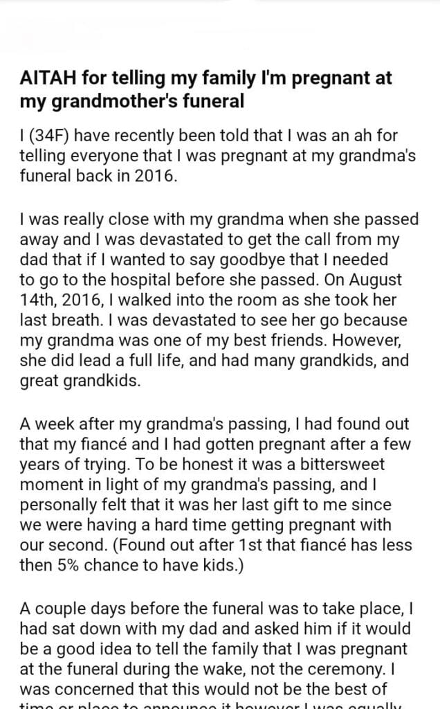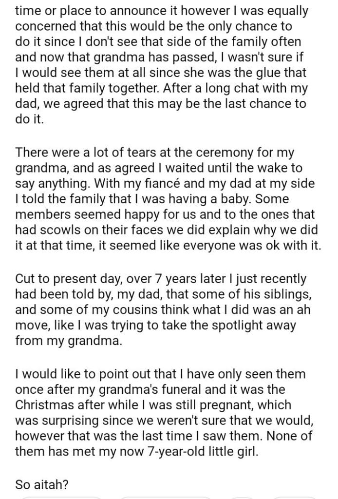 AITAH for telling my family I’m pregnant at my grandmother’s