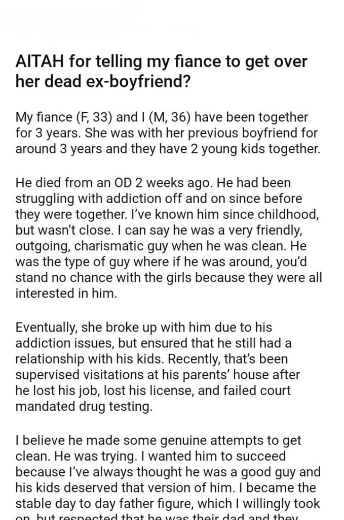 AITAH For Telling My Fiance To Get Over Her Ex Boyfriend