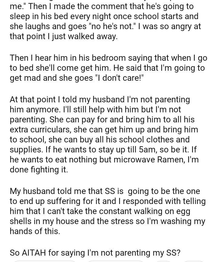 AITAH for telling my husband I’m not parenting my stepson anymore