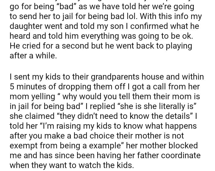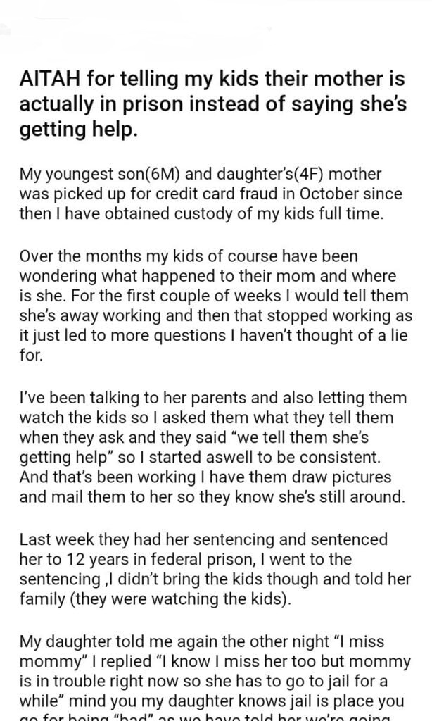 AITAH for telling my kids their mother is actually in prison instead of saying she’s getting help.