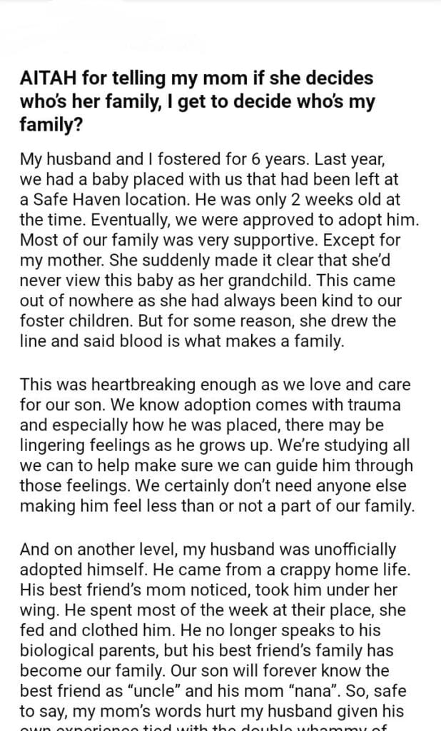 AITAH for telling my mom if she decides who’s her family, I get to decide who’s my family?