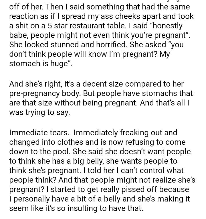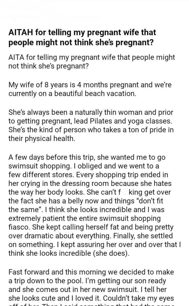 AITAH for telling my pregnant wife that people might not think she’s pregnant?