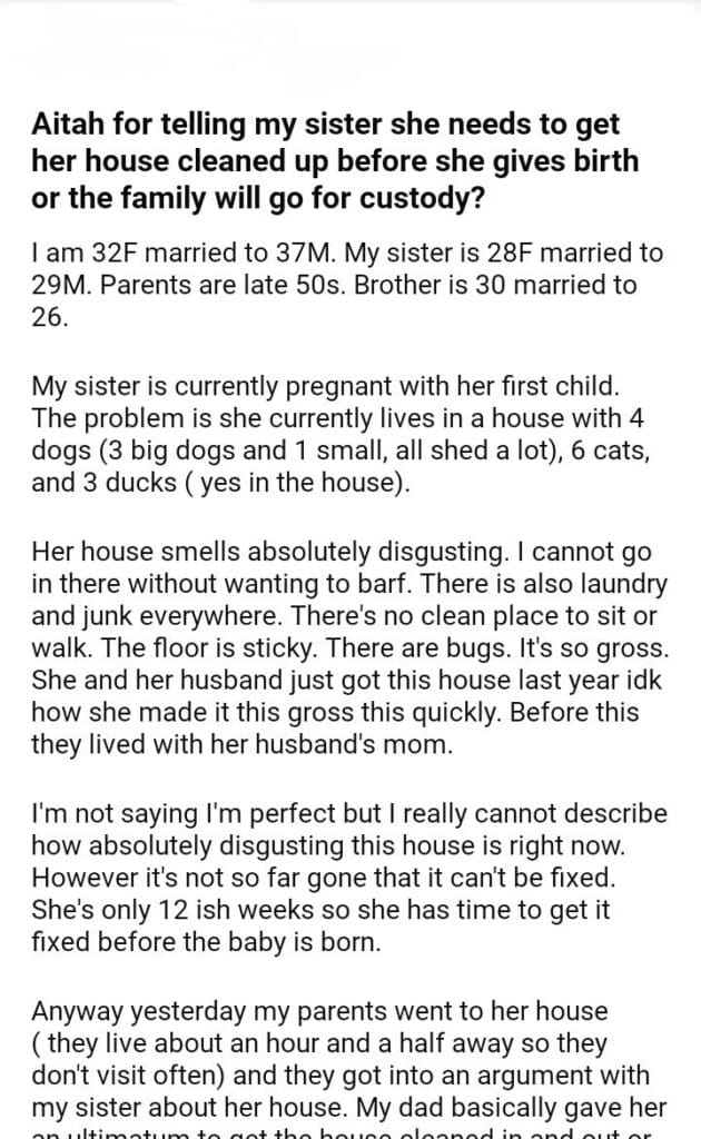 AITAH For Telling My Sister She Needs To Get Her House Cleaned