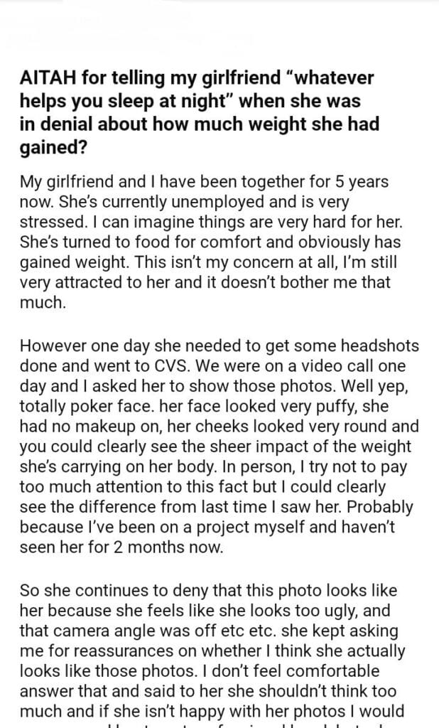 AITAH formy girlfriend sleep at night