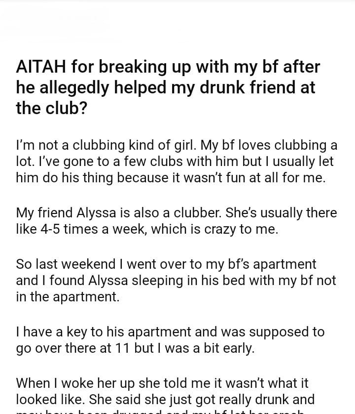AITAH my bf helped my friend at the club?
