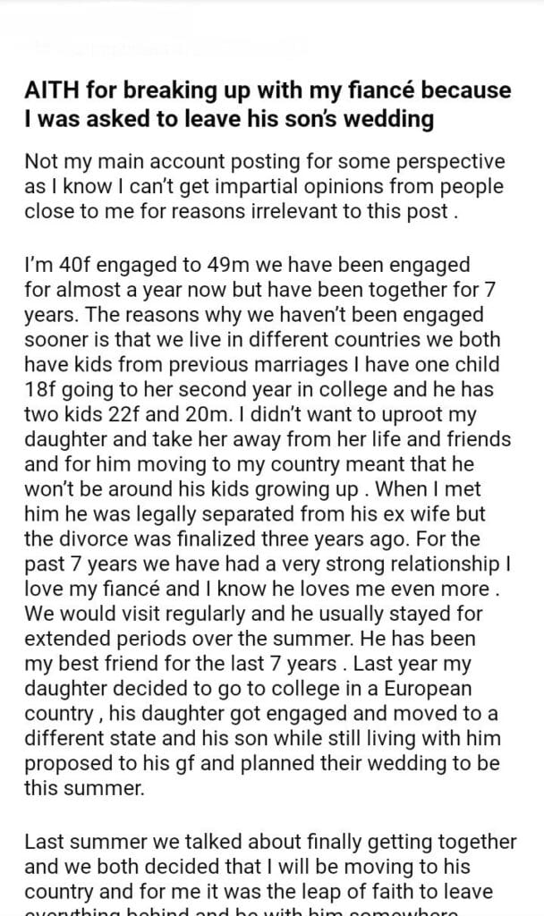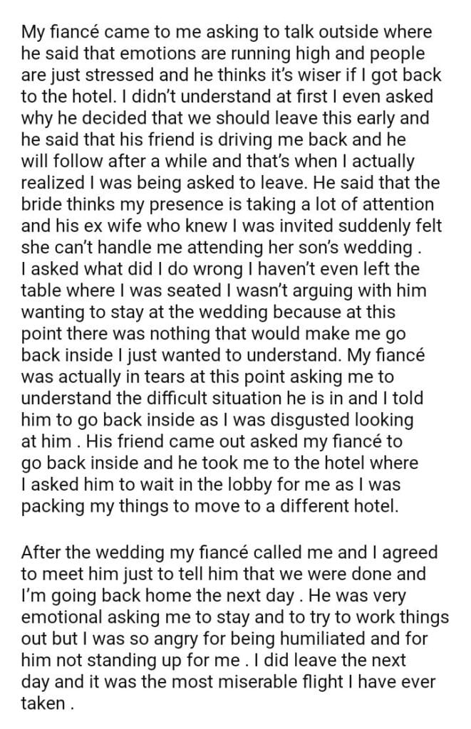 AITH for my fiancé because I was asked to leave his son’s wedding