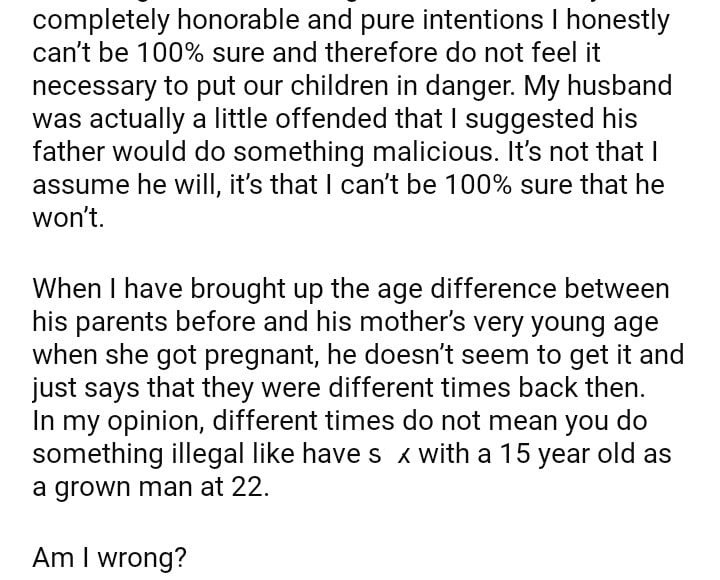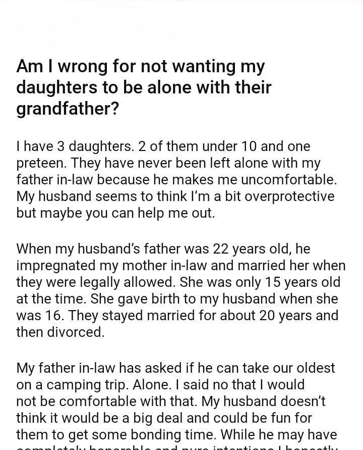 Am I wrong for not wanting my daughters to be alone with their grandfather?