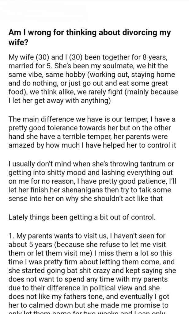 Am I wrong for thinking about divorcing my wife?