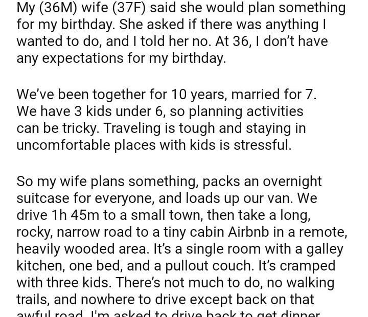 AITA for telling my wife I didn’t enjoy the birthday surprise she planned for me?June 12, 2024June 12, 2024AITA