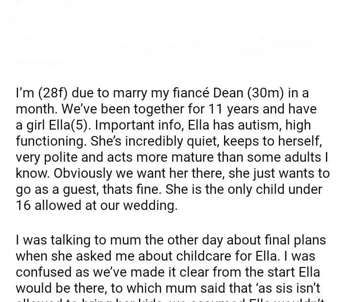 AITA for telling my mum and refusing to have my sisters kids at my wedding?June 5, 2024June 5, 2024AITA