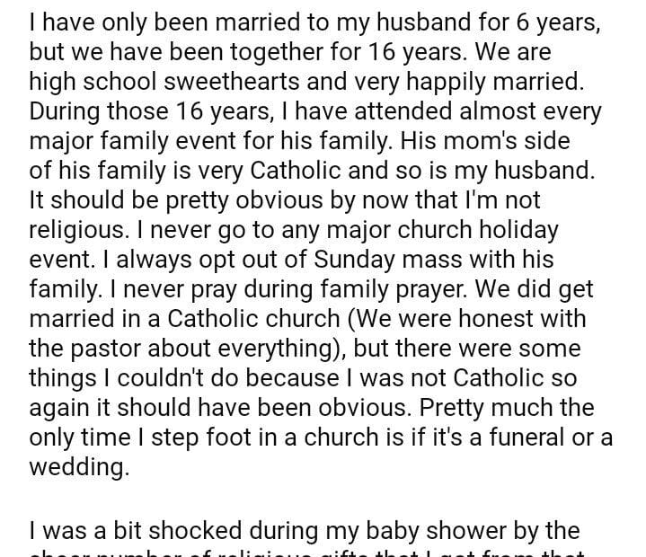 WIBTA if I throw out all the religious gifts that I was gifted for my baby shower?June 5, 2024June 5, 2024AITA