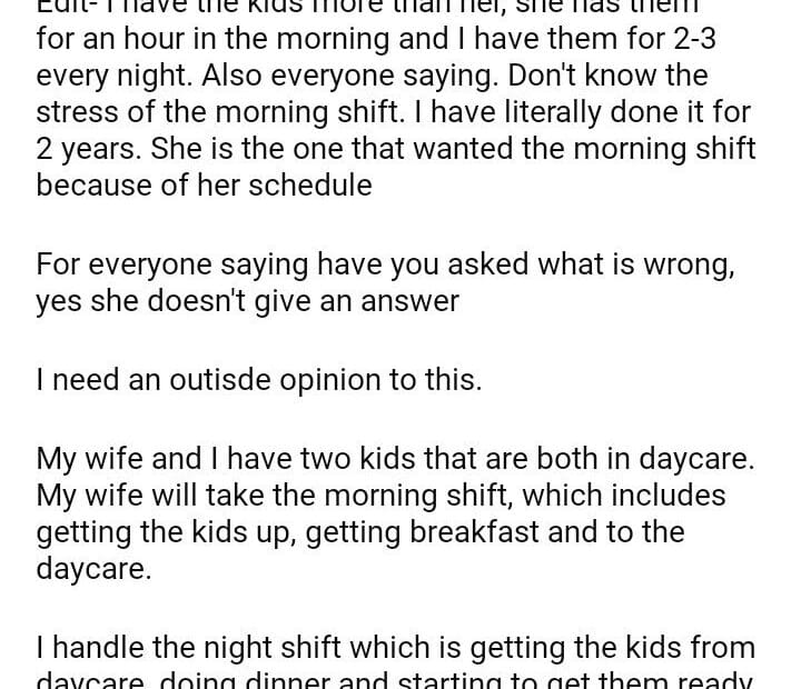 AITA for refusing to make my wife dinner since she will not make me breakfastJune 1, 2024June 1, 2024AITA