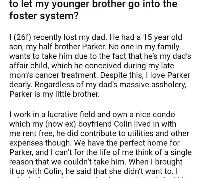 AITAH for my boyfriend because he wanted to let my younger brother go into the foster system?May 29, 2024May 29, 2024AITA