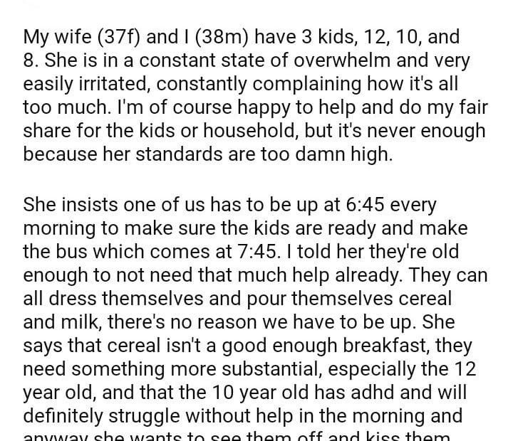 AITA for suggesting my wife lower her standards