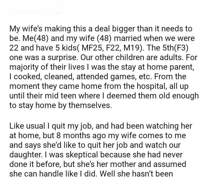 AITA for telling my wife that being a SAHM is not hard
