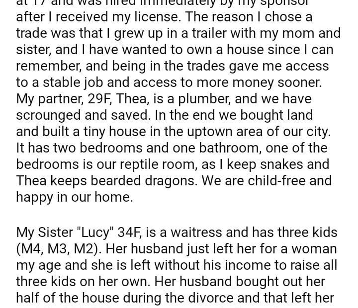 AITA for not letting my sister and her kids live in my house?