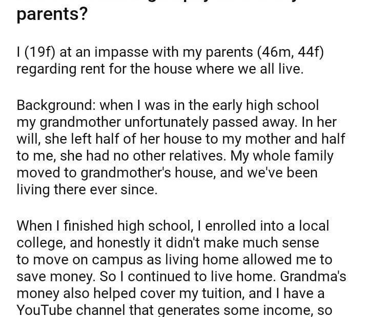 AITA for refusing to pay rent to my parents?