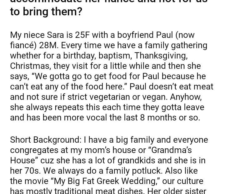AITAH telling my niece to bring vegetarian dishes to family gatherings