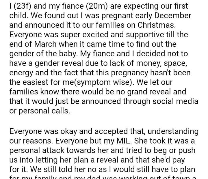 AITA for not having a gender reveal despite what my MIL wanted?