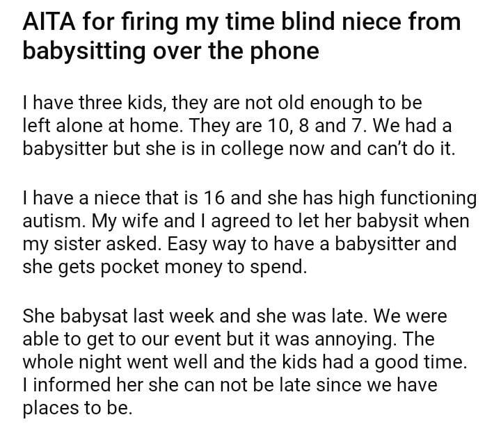 AITA for niece from babysitting over the phone