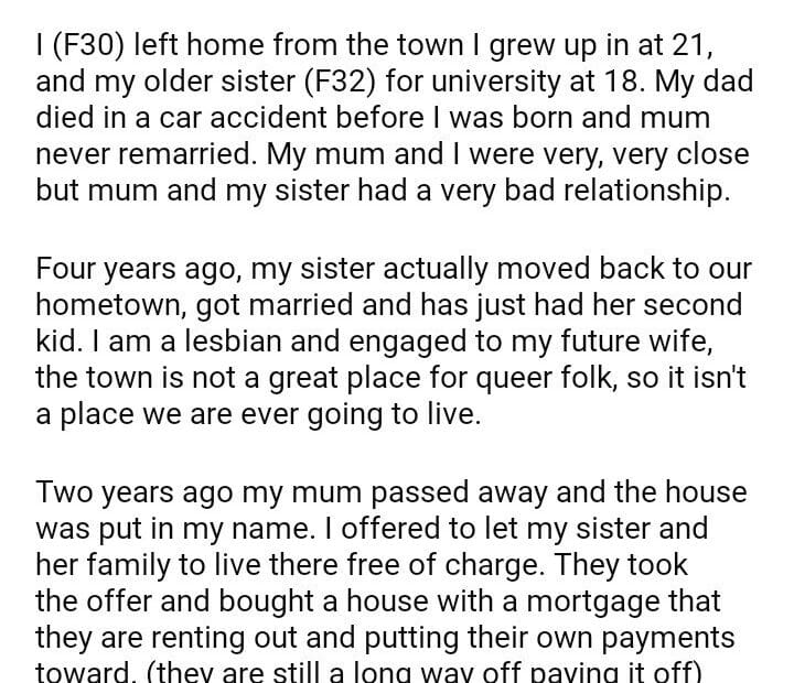 WIBTA for selling the house my sister lives in?
