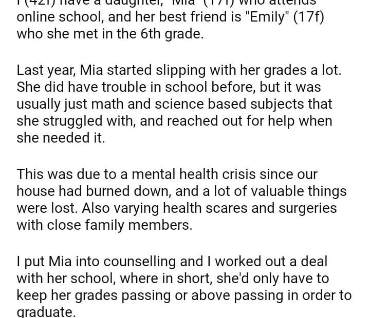 AITA for my daughter to do her friend’s homework so she can graduate?