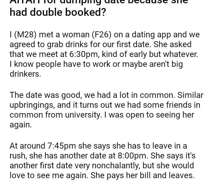 AITAH for date because she had double booked?