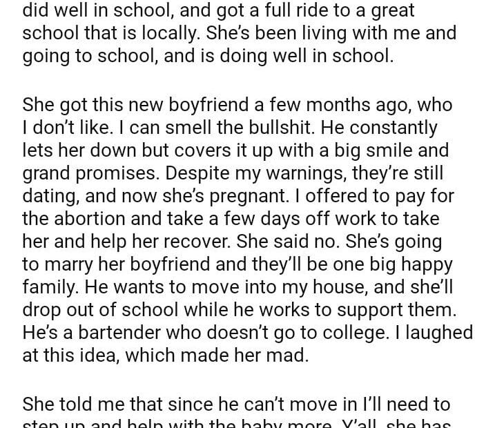 AITAH for telling my pregnant 19 year old daughter