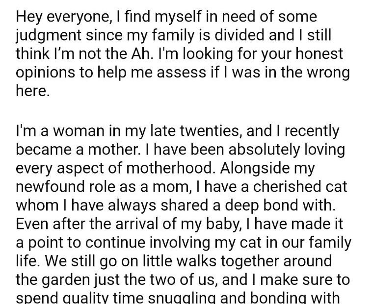 AITA for my cat after having a baby?
