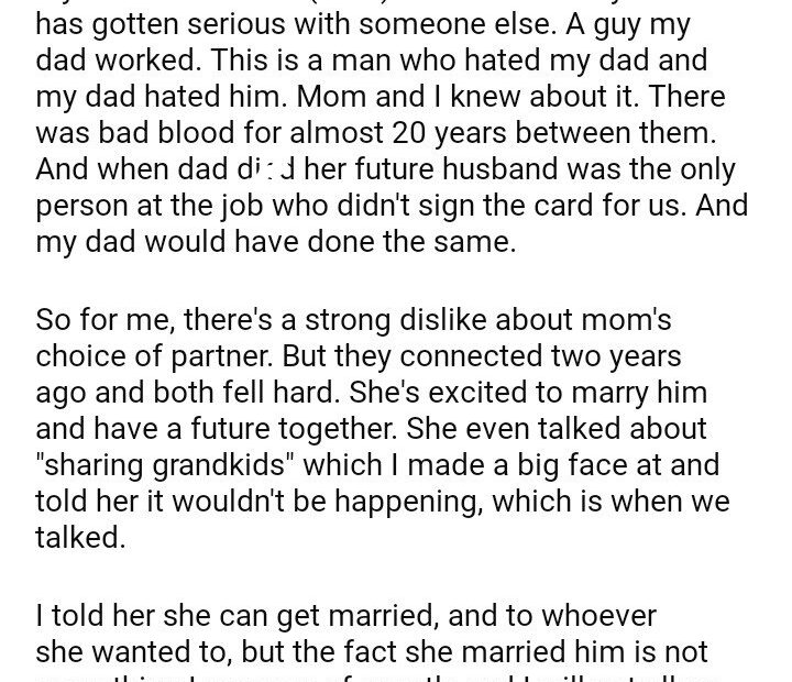 AITA for my mom to get married again