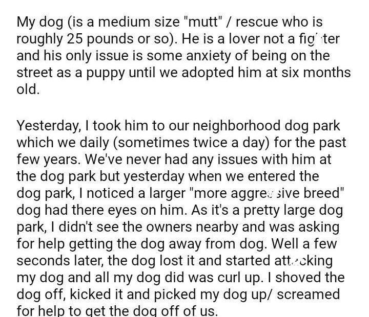 AITAH for another dog owner a the dog park?
