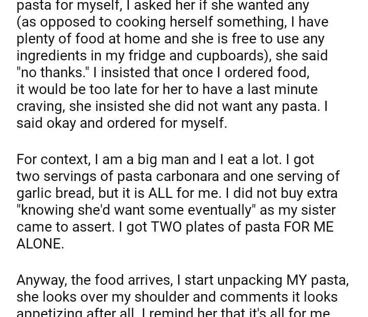 AITAH for my meal with my sister