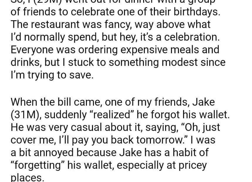 AITA for my friend’s expensive dinner