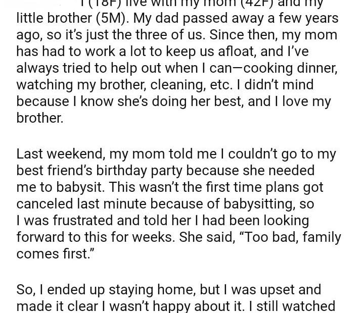 AITAH for babysit my little brother