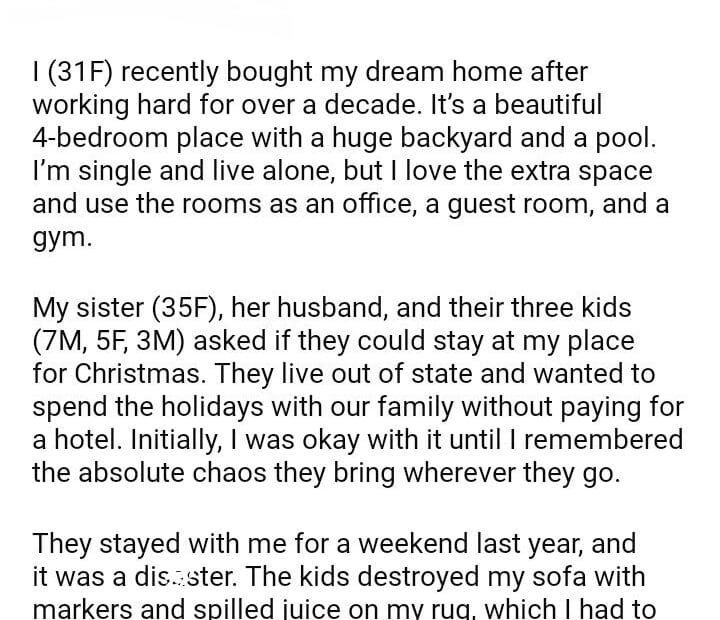 AITA for my sister’s family to stay