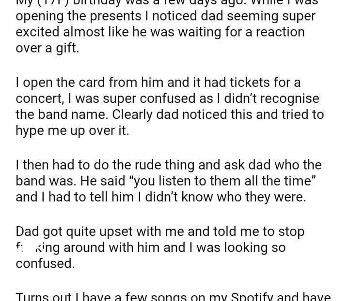 Aita for tickets Dad got me