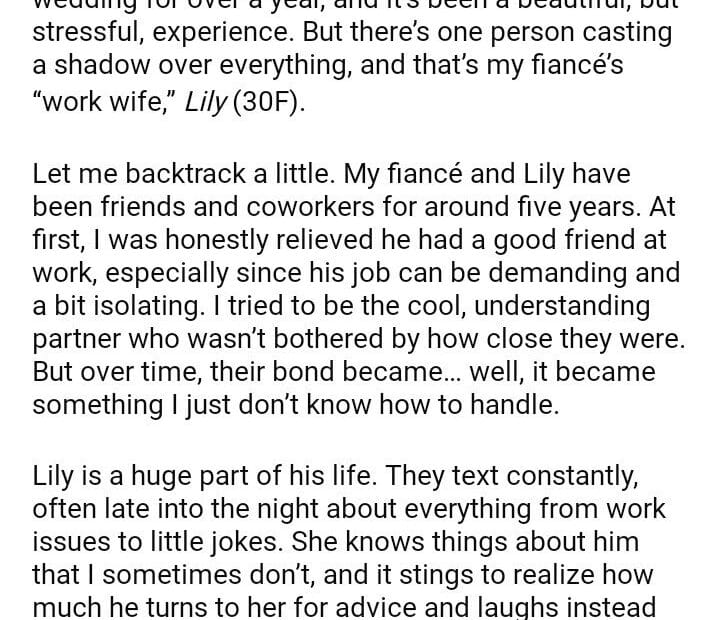 AITA for My Fiancé’s “Work Wife” from Our Wedding