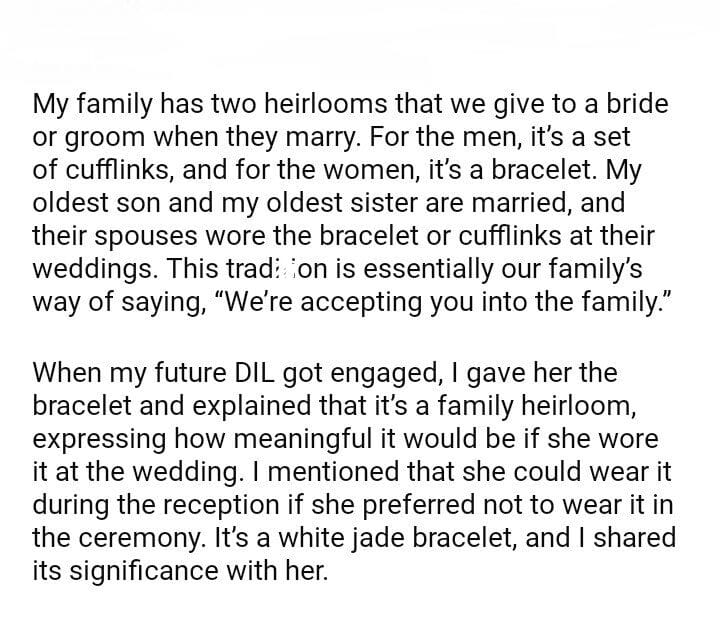 AITA for a family heirloom from my DIL before the wedding
