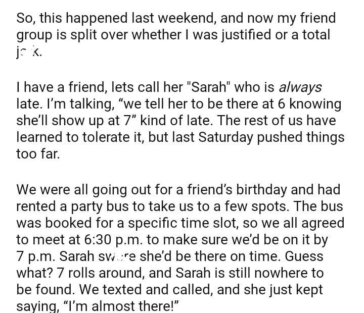 AITA for my friend because she kept us waiting