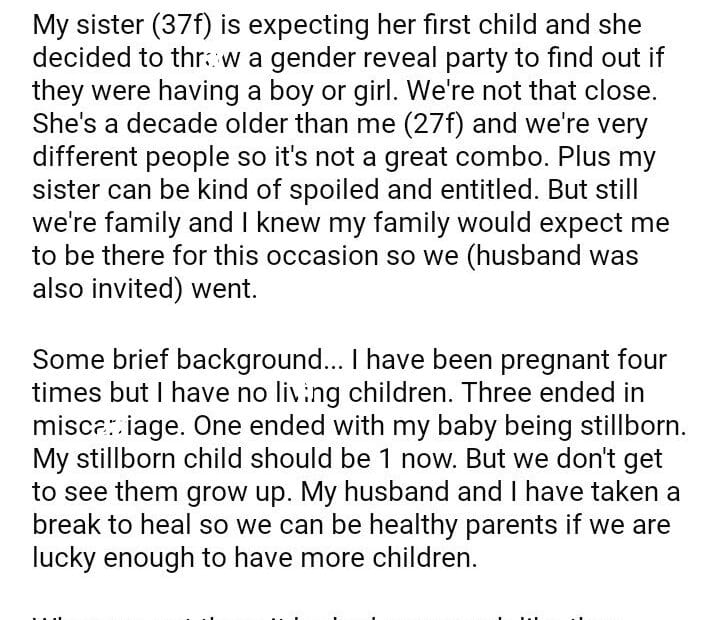AITA for my sister’s baby gender reveal party?