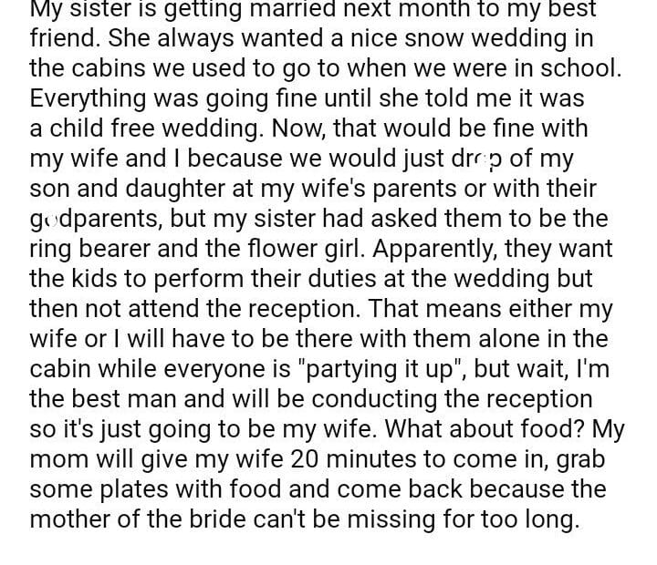 AITA for my sister’s “child-free” wedding?