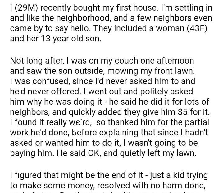 AITA for a neighborhoood kid when I didn’t ask him to?