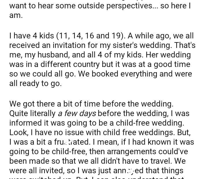 AITA for my oldest child to my sister’s child-free wedding?