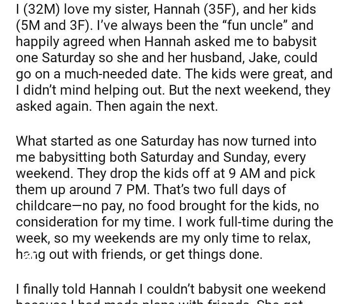AITA for my Niece and Nephew Every Weekend?