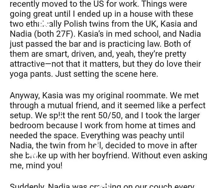 AITA for My Roommate’s Twin Sister After She Took Over My Room?September 7, 2024September 7, 2024AITA
