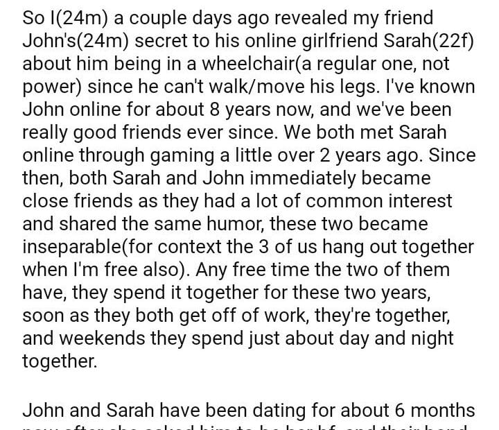 AITA for revealing my friend’s